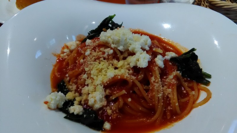 ●パスタセットのほうれん草とモッツアレラチーズのトマト(950円)