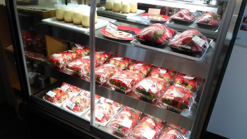 そしてご主人がイチゴ農家をしているとあって入口の冷蔵庫には新鮮で大きなイチゴが💛