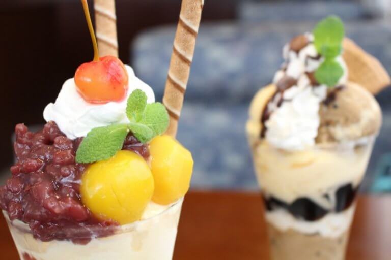 定番のチョコバナナパフェやグラスの乗ったイチゴ&バニラアイスなど様々なバリエーションがあり楽しませてくれます。